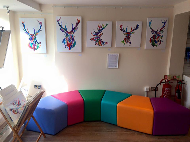 Since graduating, Amy has developed her own unique style in vibrant abstract paintings. Her playful, happy compositions have been compared to one of her favourite artists, Kandinsky. Working as a commission artist since 2002, her portfolio is varied and exciting. With artwork shipped around the UK, Europe and even as far as America and Canada.